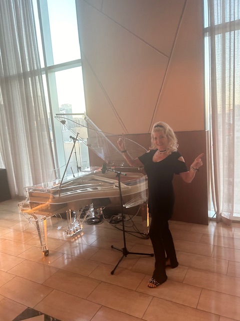 Happy cool Friday Music Event at playing ,singing and flowing at The Fairmont Austin , Room 725 with my Silvie Rider Young Jazz Duo , tonight with David Webb on piano, who was playing the custom plexiglass Bluethner Baby Grand , Cost $ 300 K from Germany ! Not too shabby ! Can I take that Baby